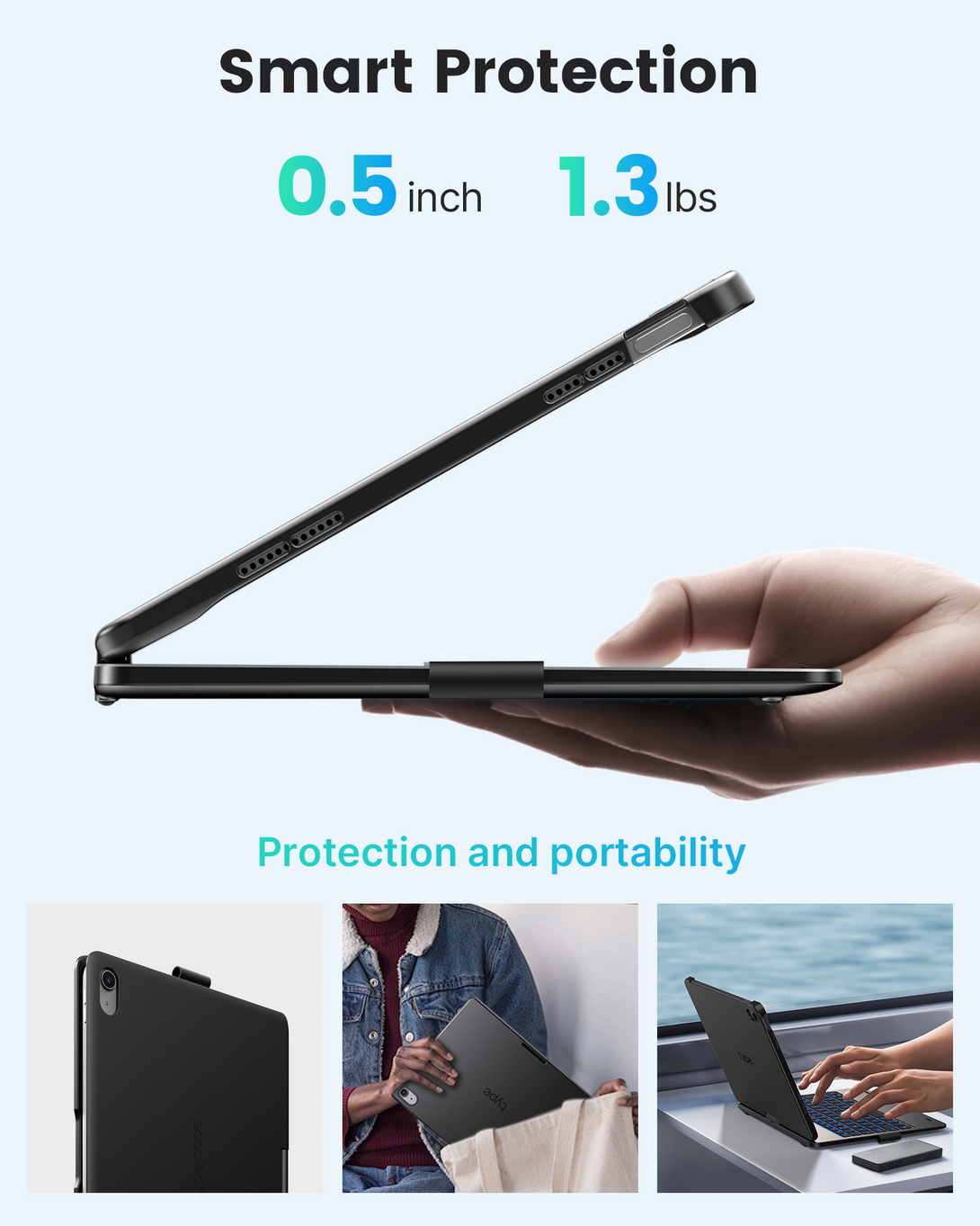 Ultimate Portability: Compact and lightweight design makes it easy to carry your iPad anywhere. The versatile hinge allows seamless switching between modes, making it perfect for on-the-go productivity.