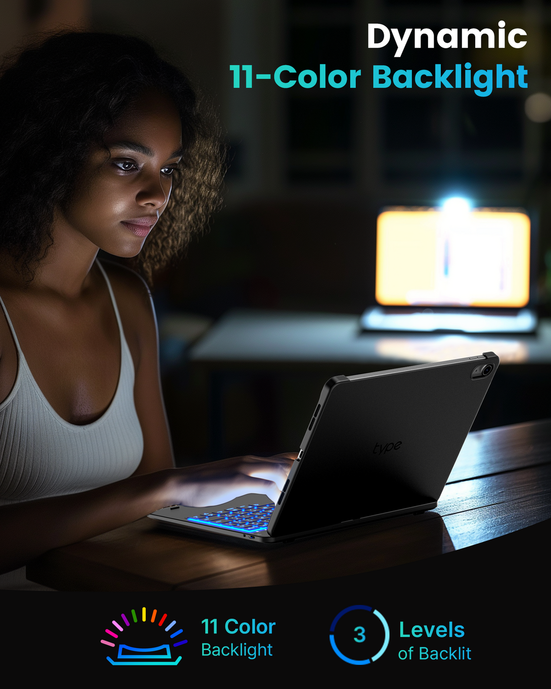 Illuminated Typing: Experience quiet and precise typing with ergonomic scissor-switch keys. The 11-color RGB backlit keyboard with a full row of iPadOS shortcuts provides a comfortable typing experience, day or night.