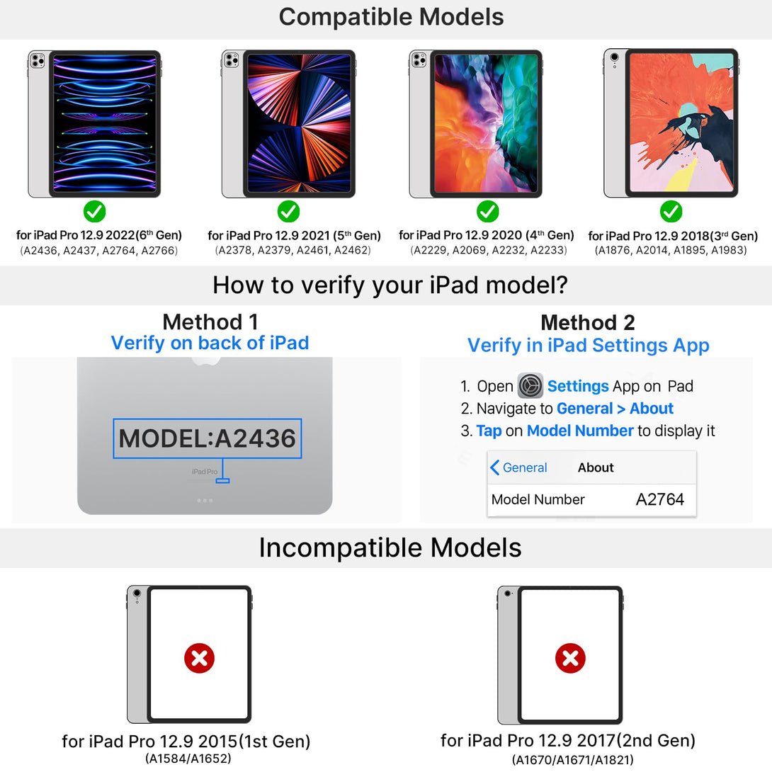 Compatibility - Compatible with iPad Pro 12.9 inch series (2022/2021/2020/2018), for iPad Pro 12.9 2022 6th Generation (A2436, A2437, A2764,...