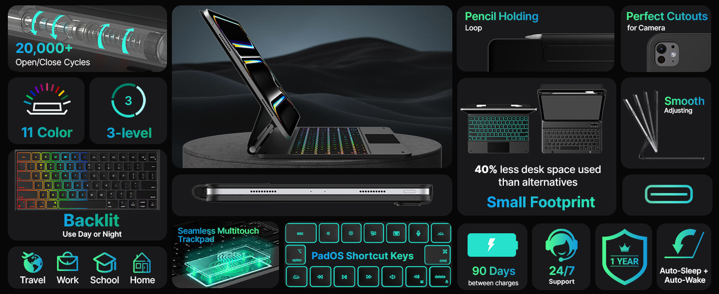 20,000 Cycle Stress Test—High-Efficiency Companion—Whether in a café, on campus, or at the office, effortlessly unfold the laptop-like keyboard to instantly switch to productivity mode. Elevate your work efficiency to new heights and accomplish every task with precision and speed.