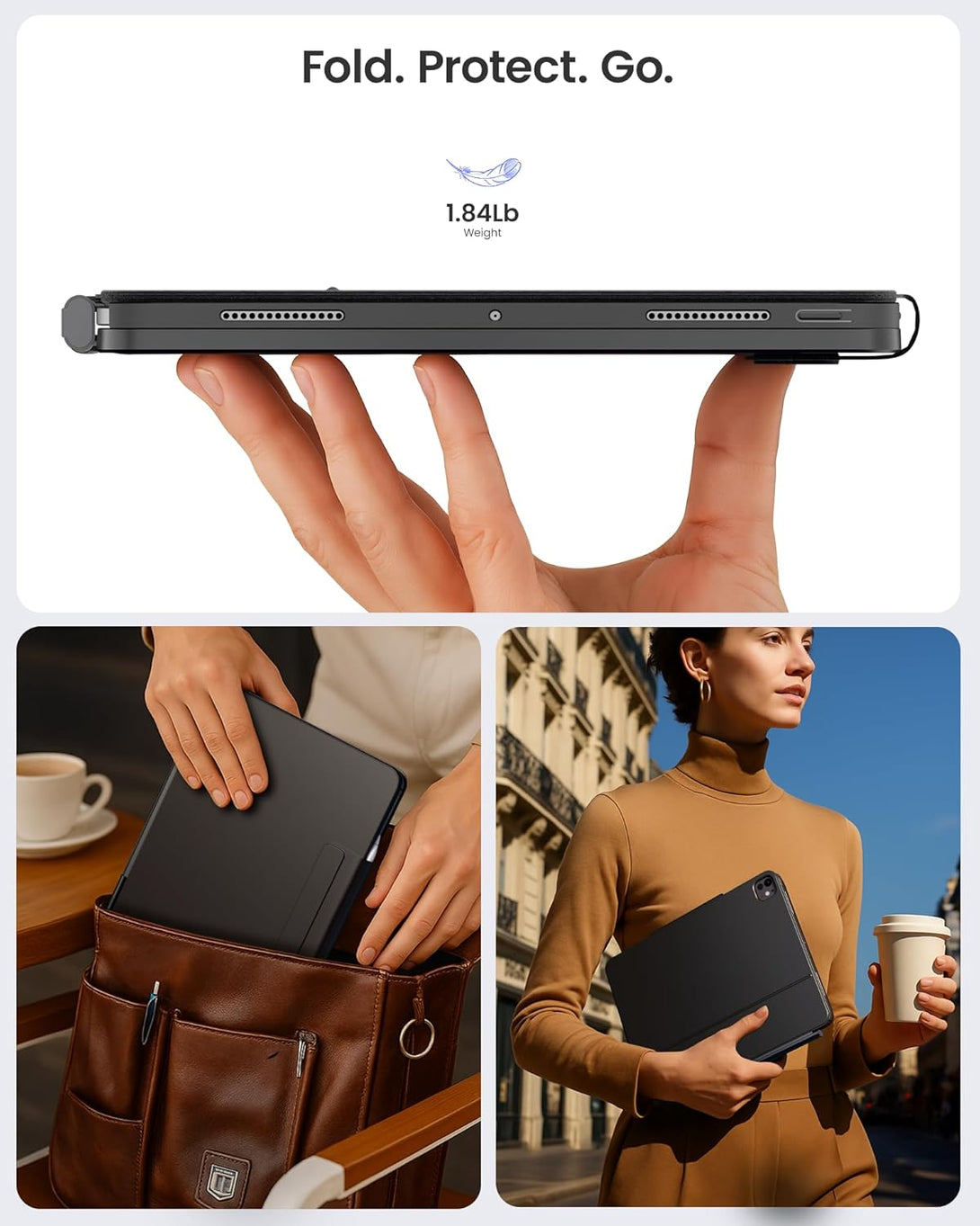 𝗪𝗼𝗿𝗸 𝗳𝗿𝗼𝗺 𝗔𝗻𝘆𝘄𝗵𝗲𝗿𝗲: Effortlessly magnetically attach your iPad and instantly transform it into a portable productivity machine, ready to work wherever, whenever you need. Whether in a coffee shop, at home, or on a plane, this simple setup allows you to stay productive no matter where life takes you.