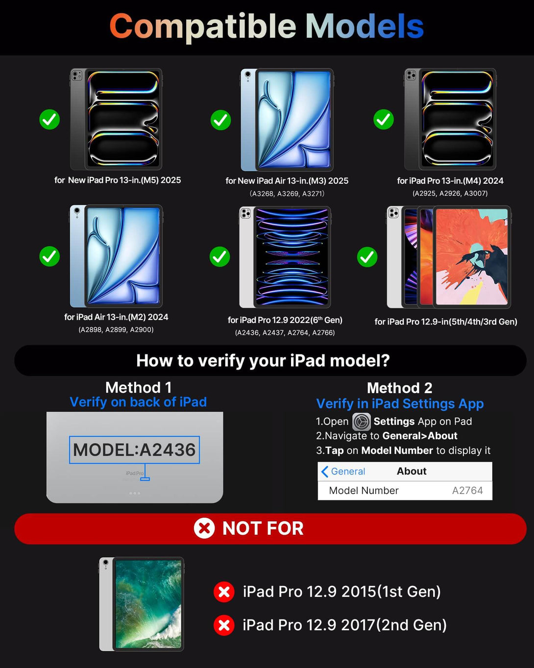 Compatibility: iPad Pro 13-inch(M5/M4, 2025/2024) & iPad Air 13-inch (M3/M2, 2025/2024) & iPad Pro 12.9 (3/4/5/6th Gen).
