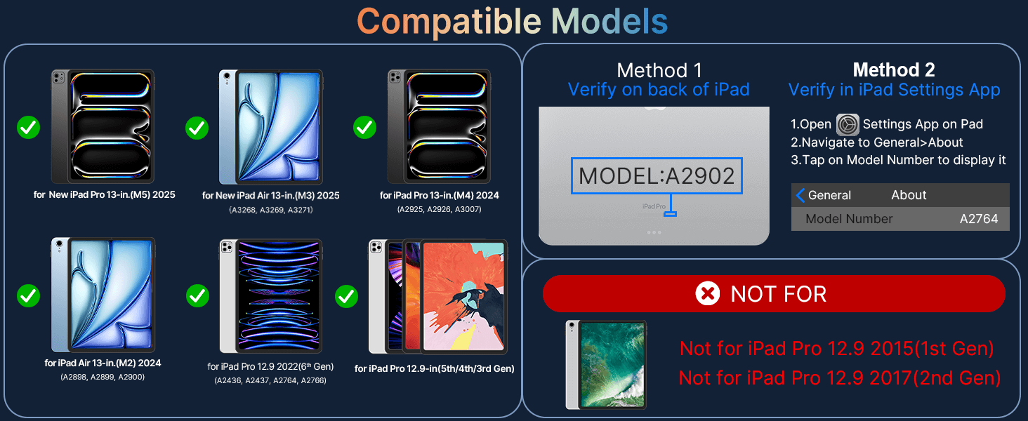 iPad Pro 13-inch(M5/M4, 2025/2024) & iPad Air 13-inch (M3/M2, 2025/2024) & iPad Pro 12.9 (3/4/5/6th Gen). |