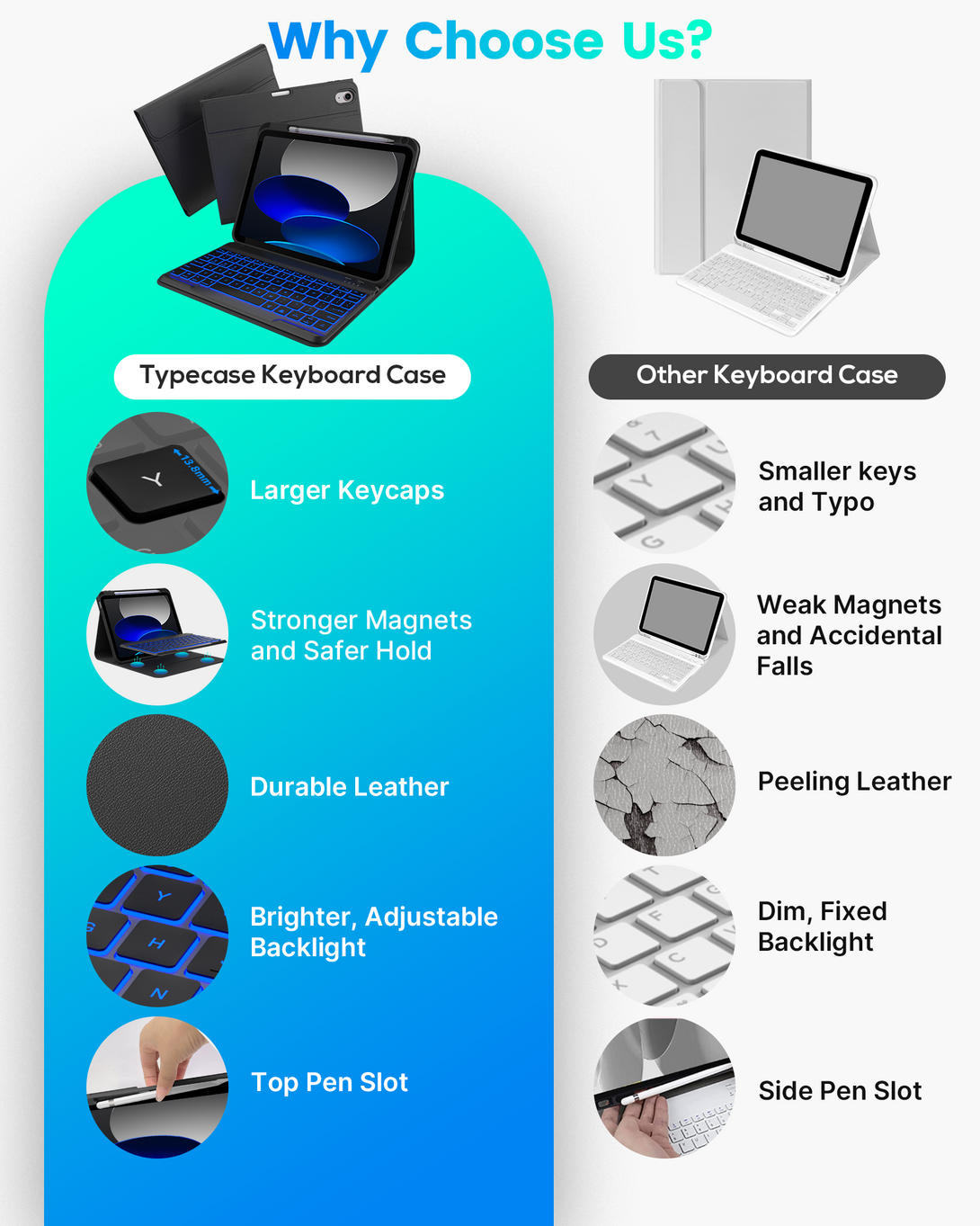 - Compromiso con la calidad: Los productos Typecase son duraderos y cumplen con altos estándares. Si tiene algún problema, contacte con nuestro equipo de atención al cliente disponible las 24 horas. La asistencia con los reemplazos necesarios garantiza que su compra siga siendo una opción confiable.