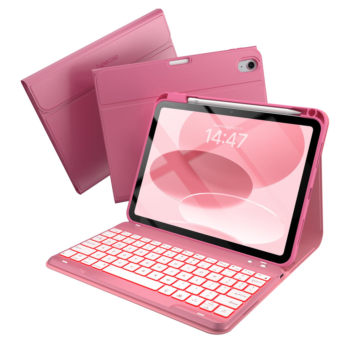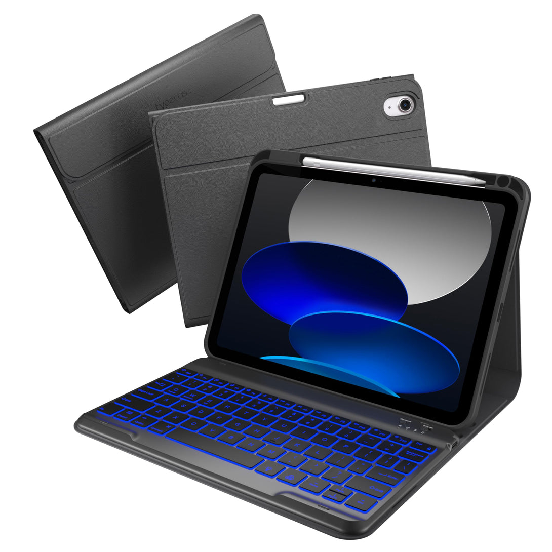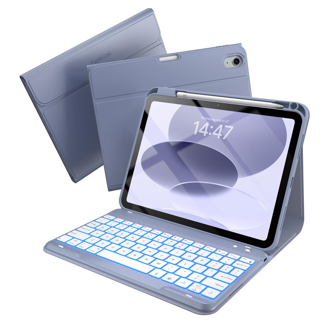 Funda con teclado Typecase Folio para iPad de 10.ª generación (2022, 10,9"), retroiluminada en 7 colores, magnética, inalámbrica y desmontable, fina y ligera, con portalápices, color lavanda