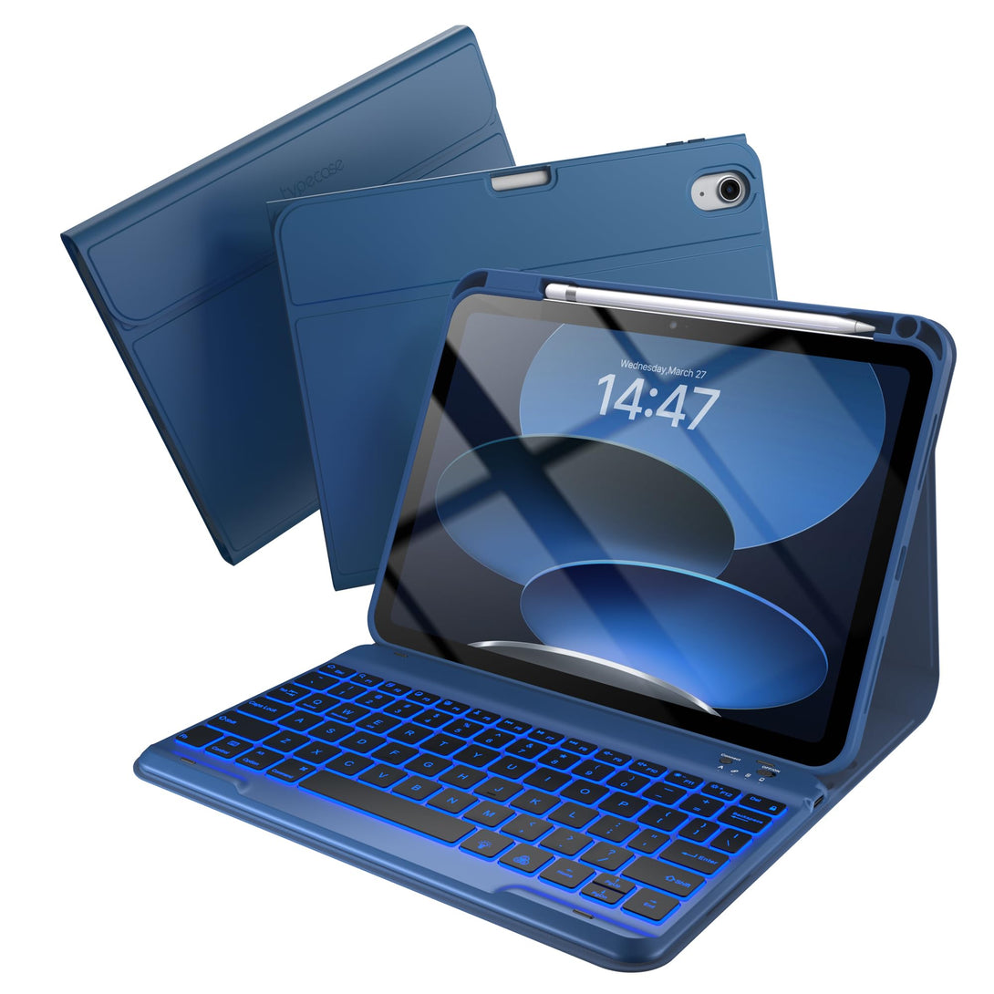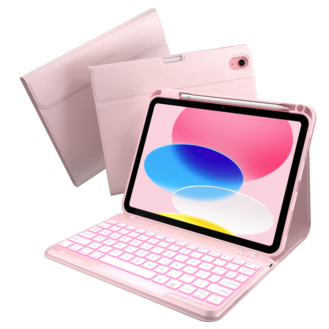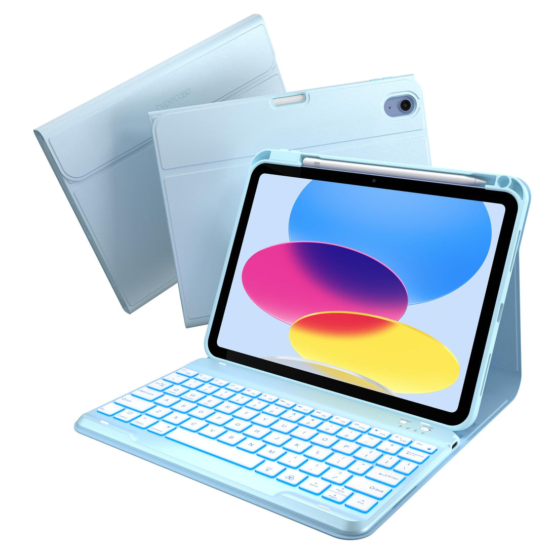Funda con teclado Typecase Folio para iPad de 10.ª generación (2022, 10,9"), retroiluminada en 7 colores, magnética, inalámbrica y desmontable, fina y ligera, con portalápices, color lavanda