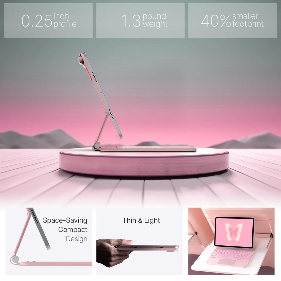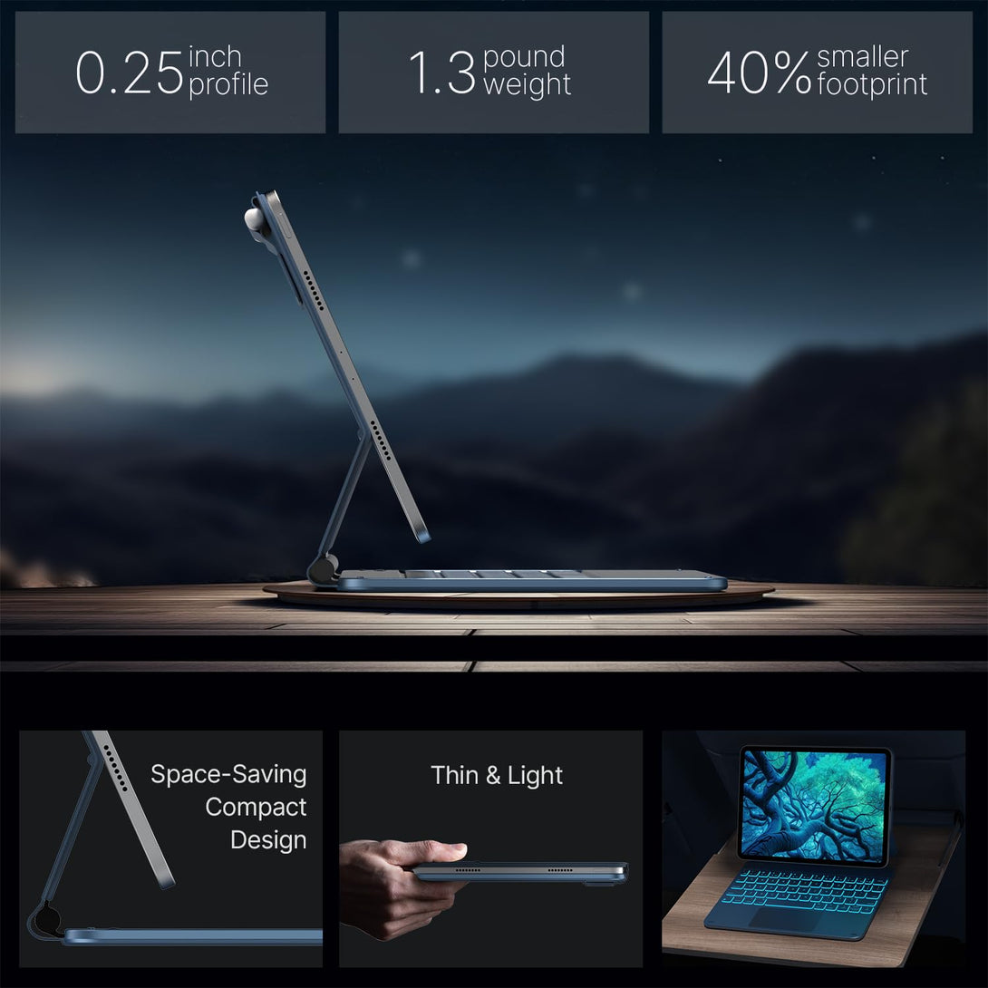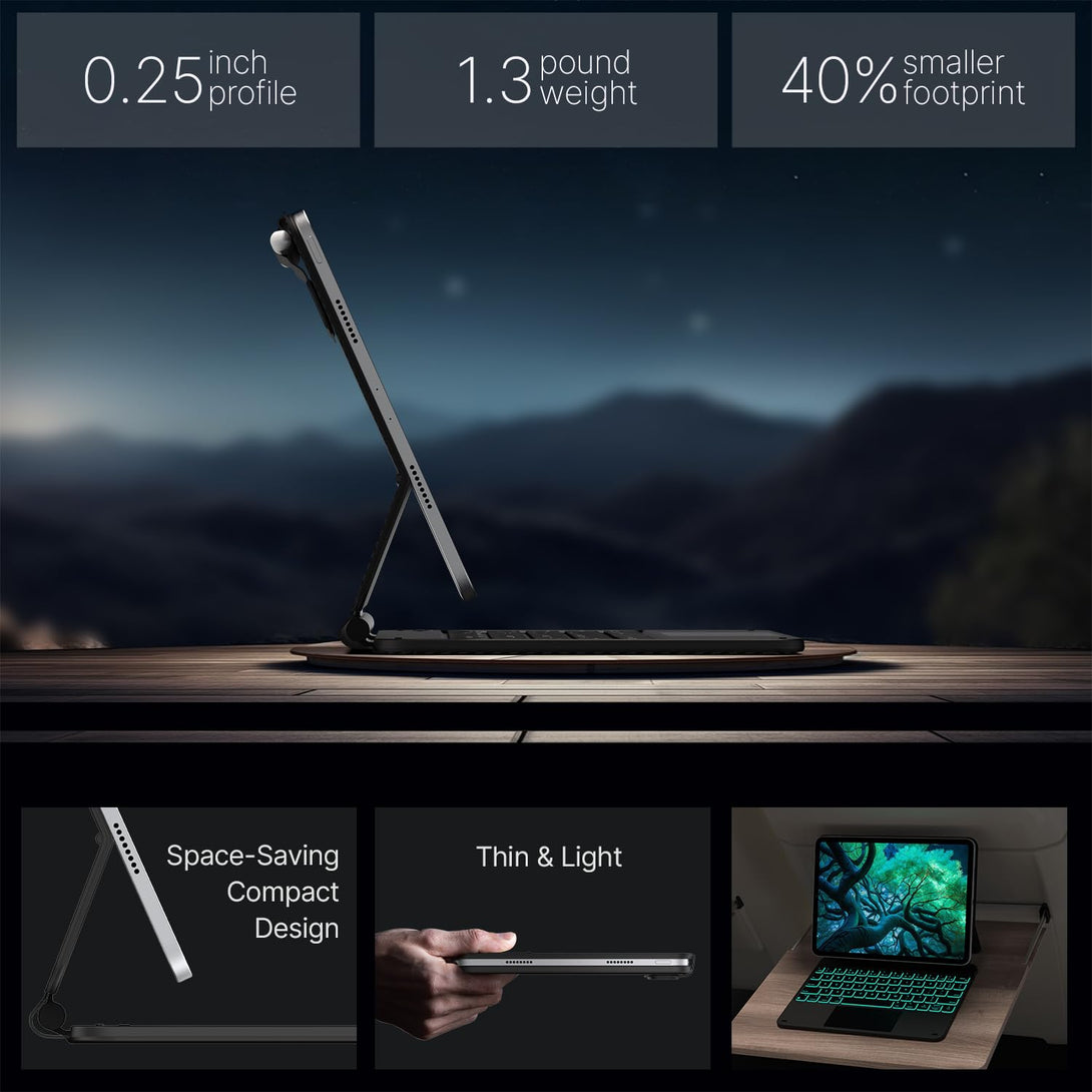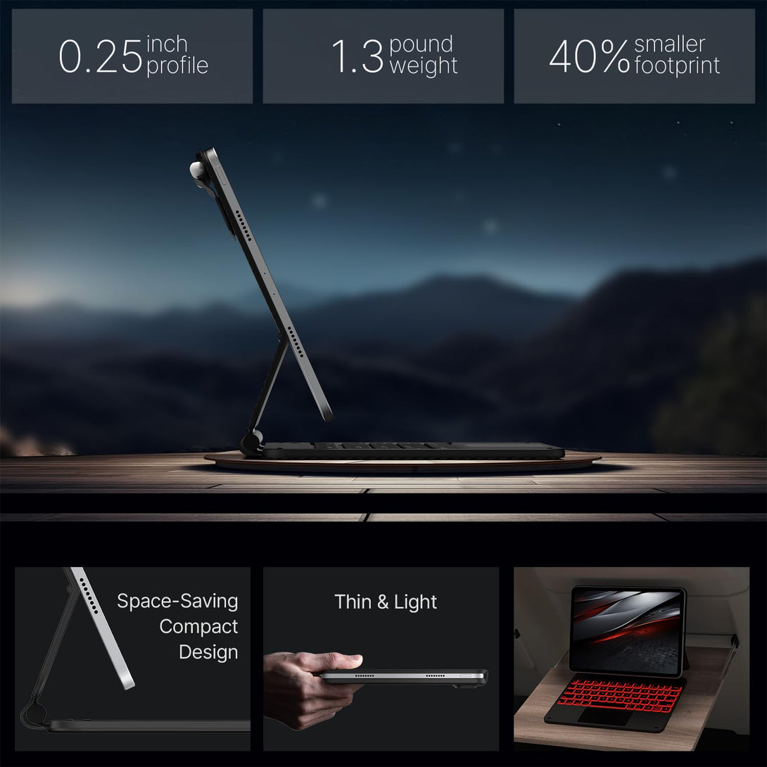 - 10-Color Backlight Keyboard with Shortcuts - Fluidly and accurately typing on the lighted keyboard for iPad 10th generation even in a dark room, ergonomic keys, 10 colors of backlight, and three adjustable backlight brightness levels give you a comfortable typing experience. No more searching around for basic functions, be more efficient with a full row of PadOS shortcuts to adjust brightness levels, change backlit colors, media, volume control, and more.