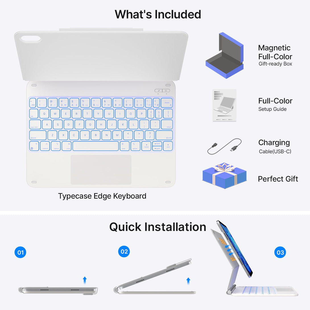 Package Contents: 1 x Magnetic Clasp Keyboard for iPad 10th Gen (10.9") with Trackpad; 1 x USB-C Charging Cable; 1 x Full-Color Product Manual with step-by-step instructions. Free lifetime technical support and a 12-month manufacturer's warranty can give you peace of mind about your purchase and assurance that a great team is ready to help every step of the way.