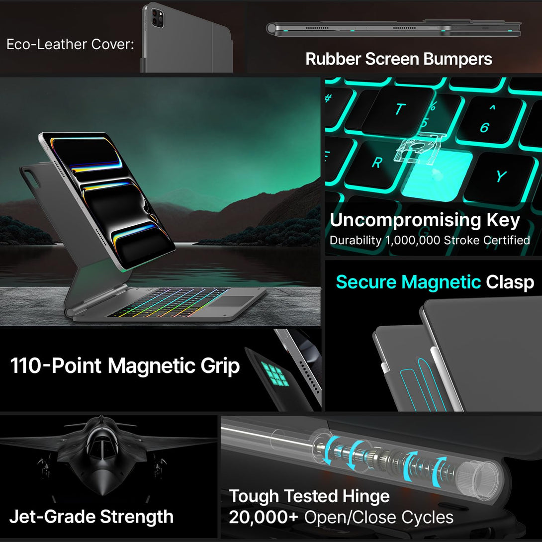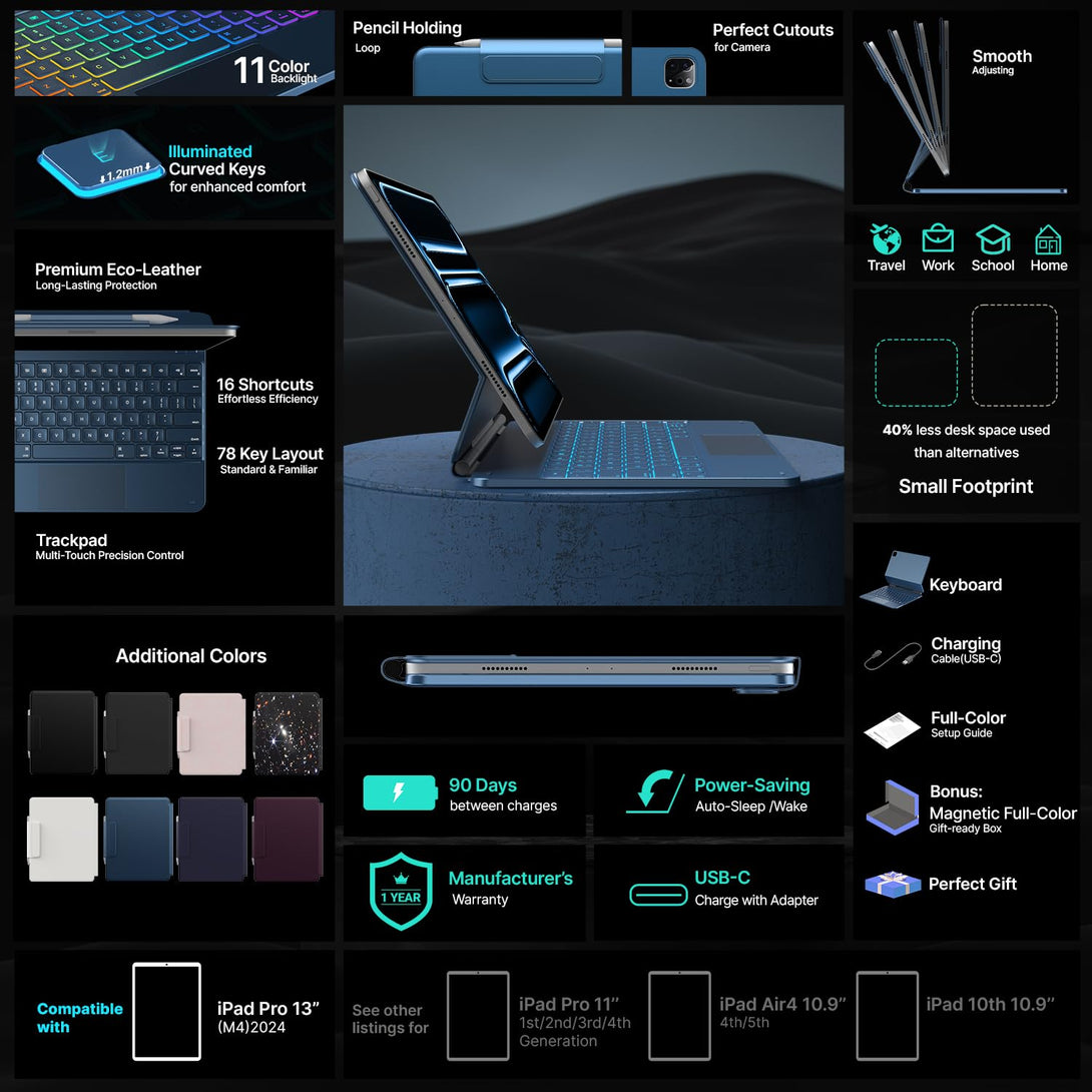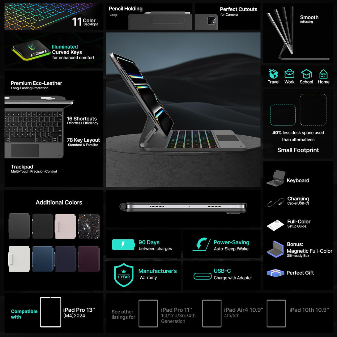 ๐๐น๐ถ๐ฐ๐ธ ๐๐ป๐๐๐ต๐ฒ๐ฟ๐ฒ:Elevate your iPad Pro M4 13 inch experience with our precise, versatile keyboard. Effortlessly navigate work and play with a full-area trackpad.