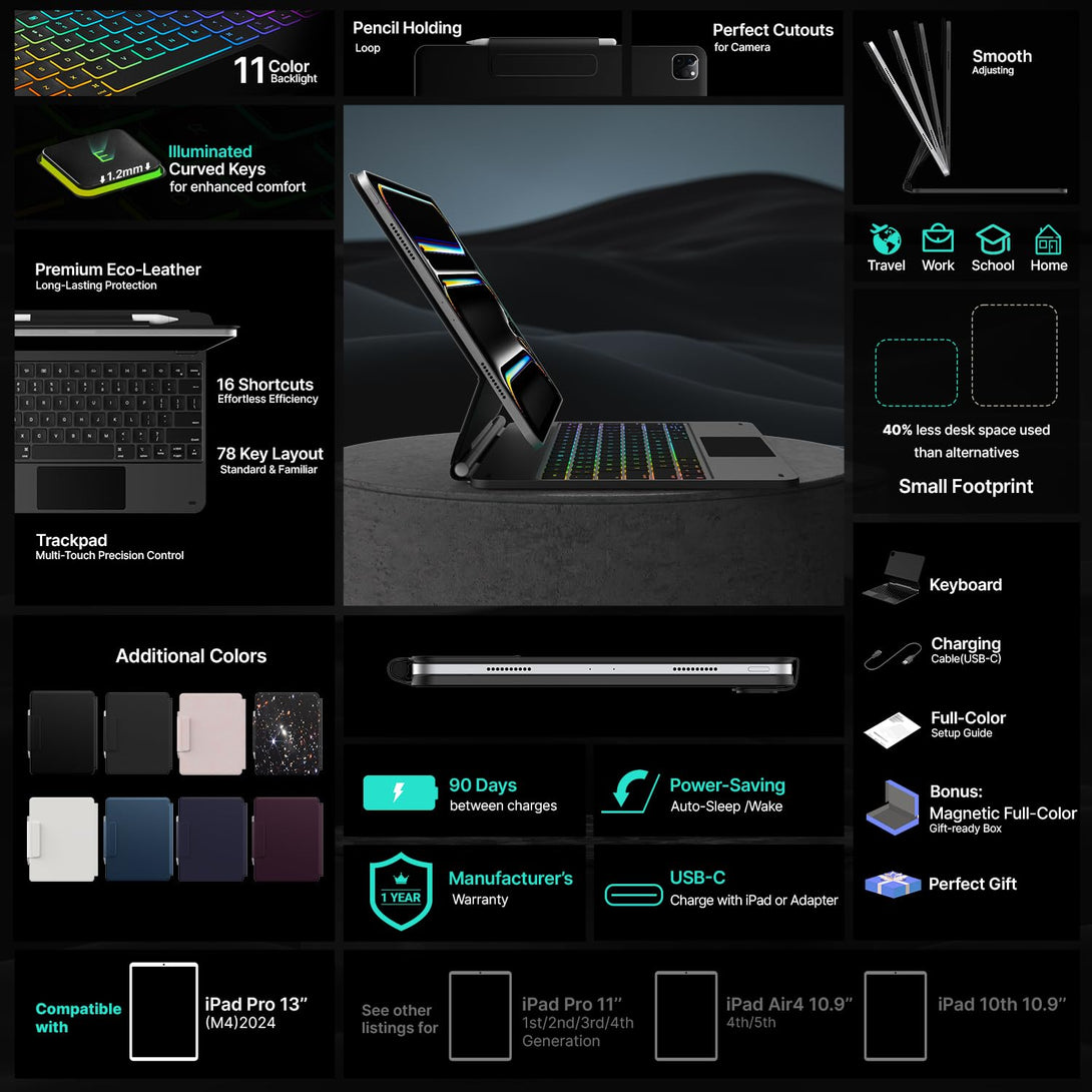 ๐๐ผ๐บ๐ฝ๐ฎ๐๐ถ๐ฏ๐ถ๐น๐ถ๐๐: Elevate your iPad Pro 13 inch (M4) 2024 experience with our versatile keyboard case. models include 2024 iPad Pro...
