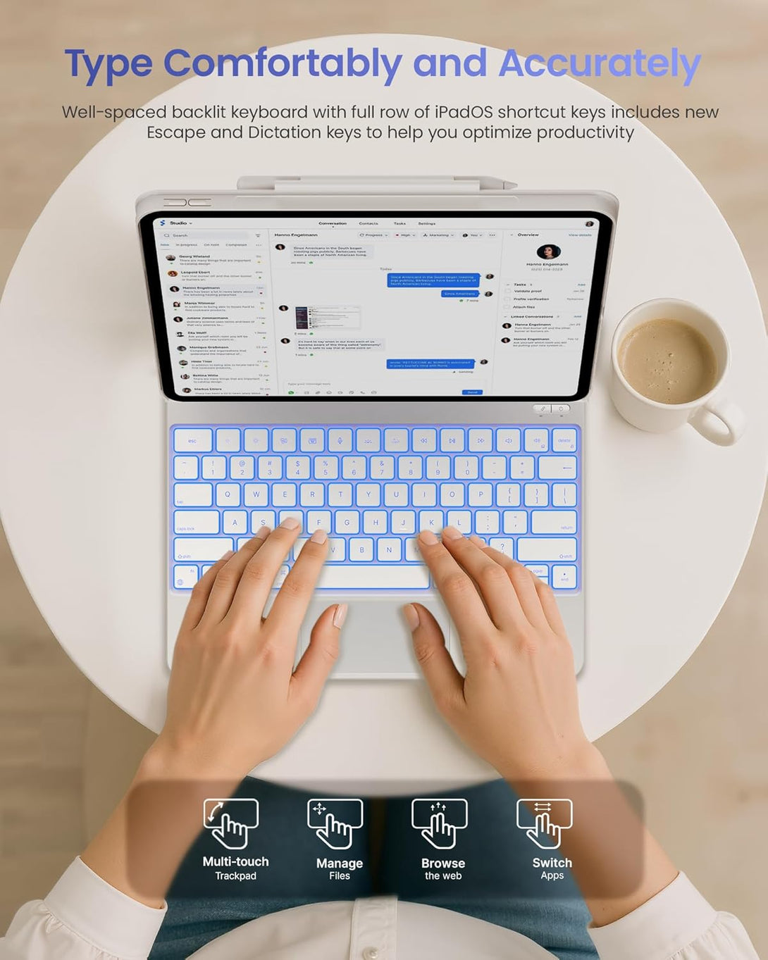 𝐏𝐫𝐞𝐜𝐢𝐬𝐢𝐨𝐧 𝐓𝐨𝐮𝐜𝐡𝐩𝐚𝐝 – 𝐒𝐦𝐨𝐨𝐭𝐡 𝐢𝐏𝐚𝐝𝐎𝐒 𝐆𝐞𝐬𝐭𝐮𝐫𝐞𝐬: Supports all native iPadOS gestures—scroll, zoom, and switch apps without lifting your hands.