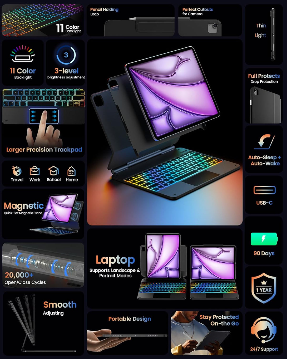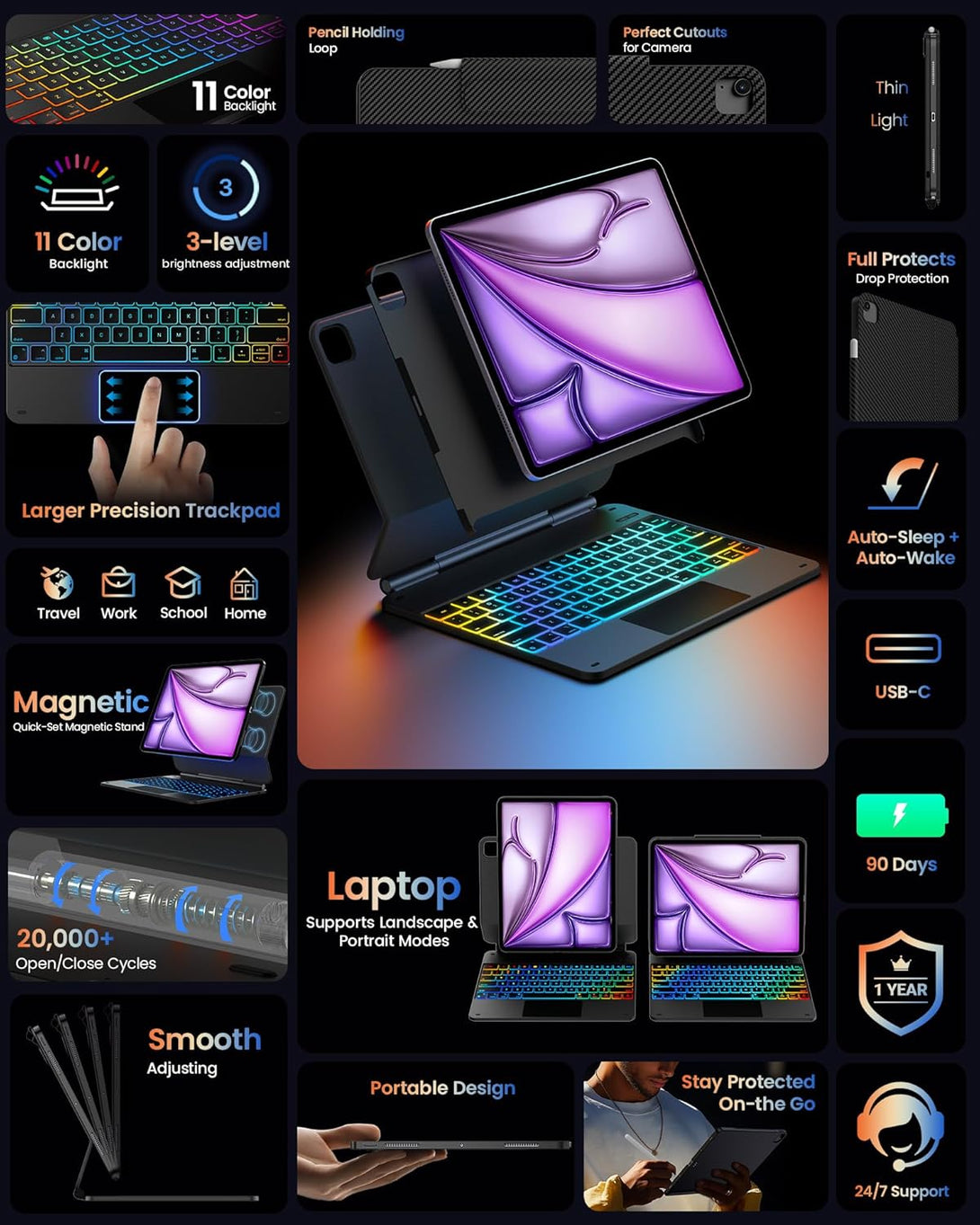 𝐏𝐞𝐫𝐟𝐞𝐜𝐭 𝐅𝐢𝐭 – 𝐢𝐏𝐚𝐝 𝐀𝐢𝐫 𝟏𝟑-𝐢𝐧𝐜𝐡 (𝟐𝟎𝟐𝟒): Exclusive for models A3268, A3269, A3271—unique magnetic arrangement; other iPads cannot attach. If...