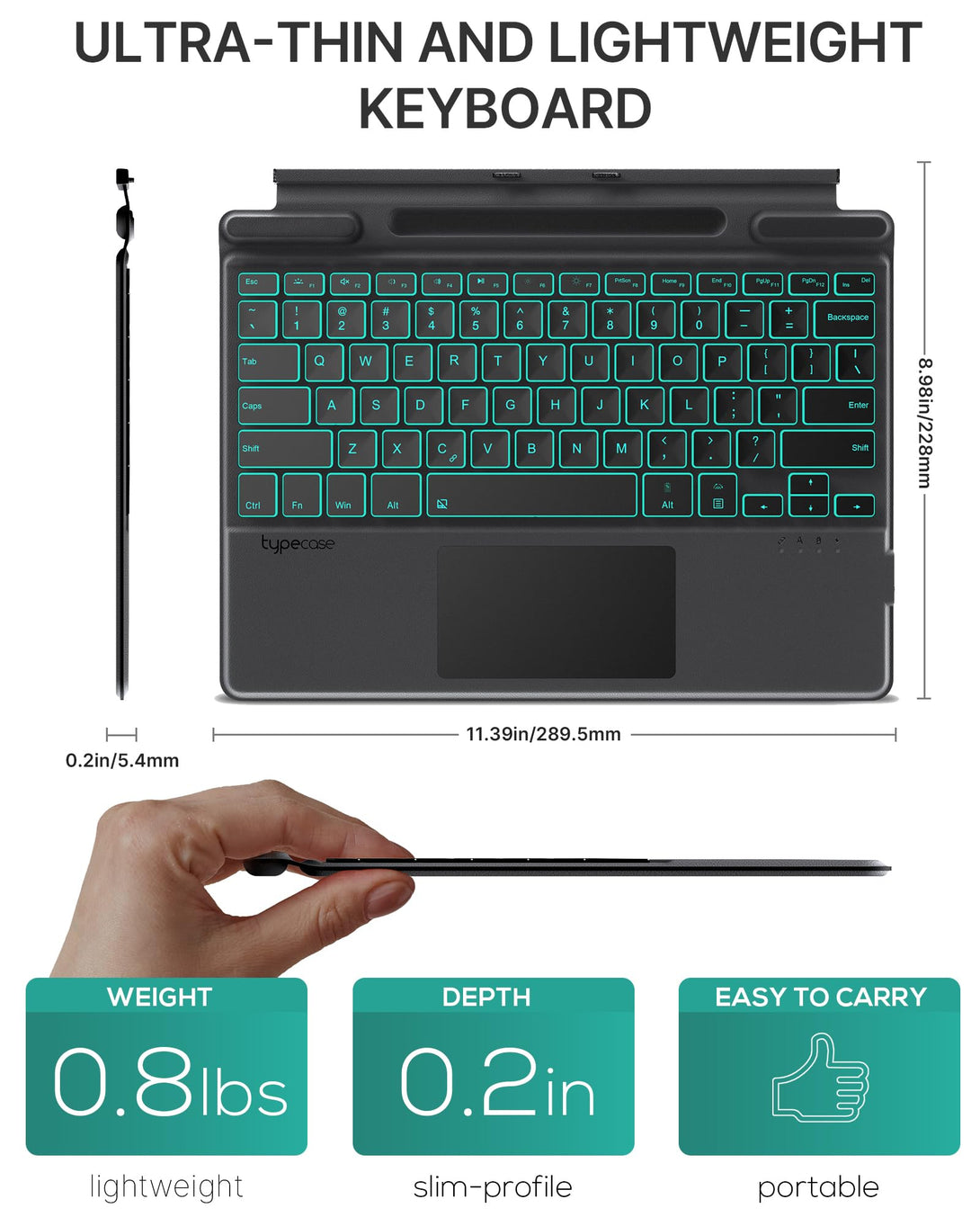 Typecase Cover for Microsoft Surface Pro 9 Keyboard/Pro 8/Pro X 13 Inch: 11-Color Backlit - Multi-Touch Trackpad - Wireless Magnetic Detachable Keyboard - Slim Portable Keyboard with Pen Holder
