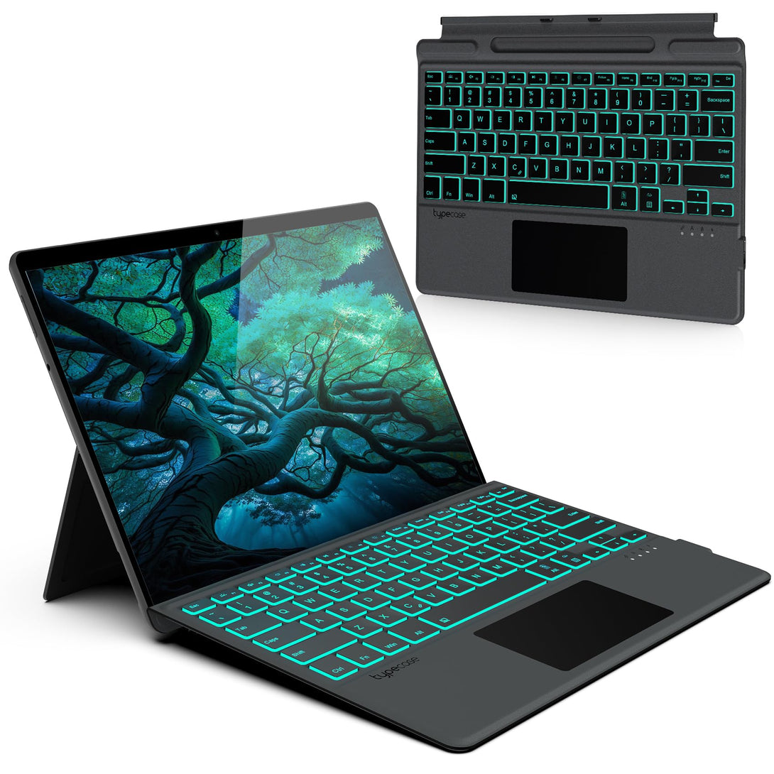 - Compatibility & Comfortable Typing Experience - Typecase Keyboard Cover is specifically designed for the Microsoft Surface Pro 9 (2022), Surface Pro 8 (2021), and Surface Pro X 13-inch tablet. This slim and lightweight detachable keyboard features full-size keys, a multi-touch Precision trackpad, 11 colors of backlighting, and a row of shortcuts for a more comfortable and faster typing experience. Enjoy a seamless and efficient typing experience with our type cover for Surface Pro 9, Surface Pro 8, and Surface Pro X.